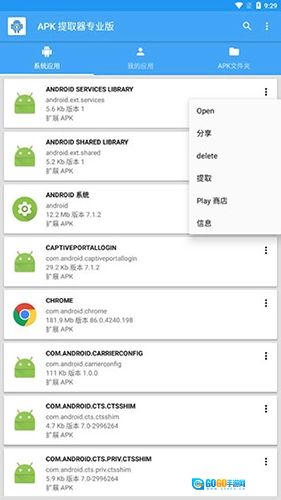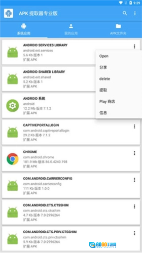 3、点击应用右侧的“…”按钮即可执行相关操作,比如删除、提取、查看信息等,还能获取apk文件的详细信息,使用起来十分便捷。
