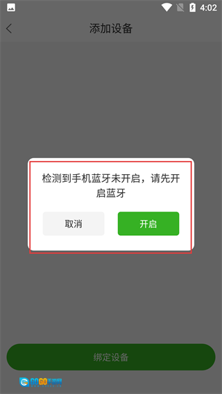 4、在执行添加设备的操作过程中,要是出现【检测到手机蓝牙未开启-请先开启蓝牙】的提示,您可以点击【开启】按钮来打开蓝牙,这样就能继续进行设备绑定的流程了。
