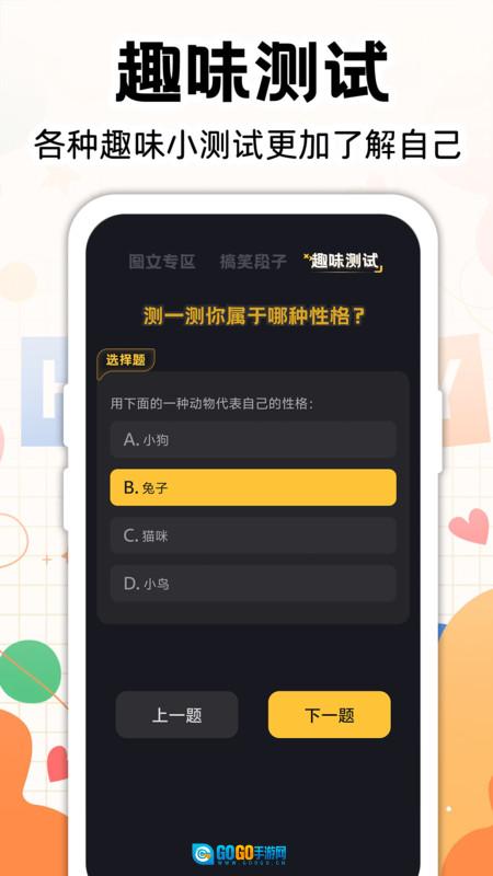 3、在趣味测试页面,您可以随时开展各类内容的测试,以便及时获取不同的测试信息。