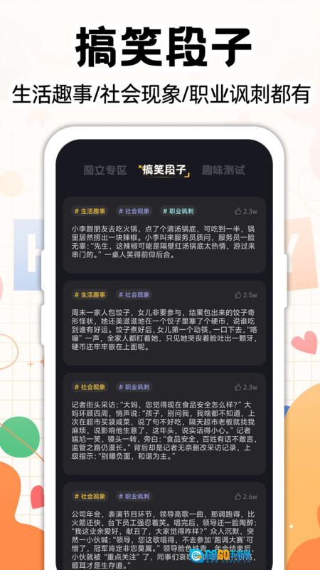 2、搞笑段子板块汇聚了各类精彩内容,用户能够及时了解不同段子的具体信息。