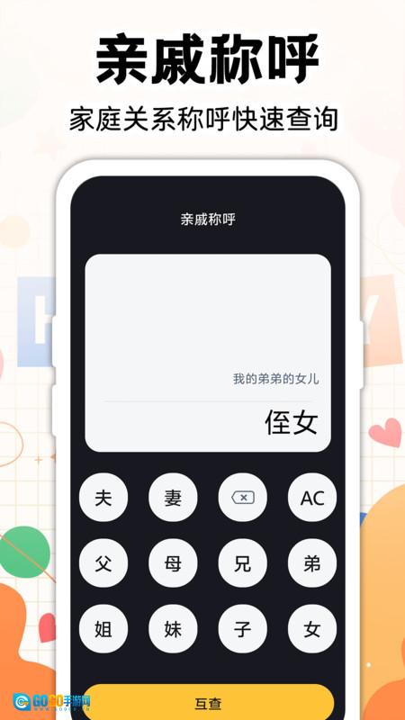 2、“家庭关系称呼查询”这个功能实在太贴心了!逢年过节走亲戚时,再也不用为怎么称呼长辈或亲戚犯愁——只要输入对应的关系,就能立刻知道正确叫法,彻底避免了叫错人带来的尴尬。