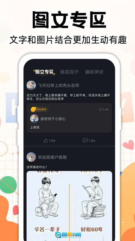 2、这里不只有单纯的文字段子,还配备了搞笑图片与神评论,图文结合的呈现方式让笑点变得更加密集,甚至有时评论区的内容比正文还要逗趣,常常让人笑得眼泪都出来了。