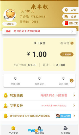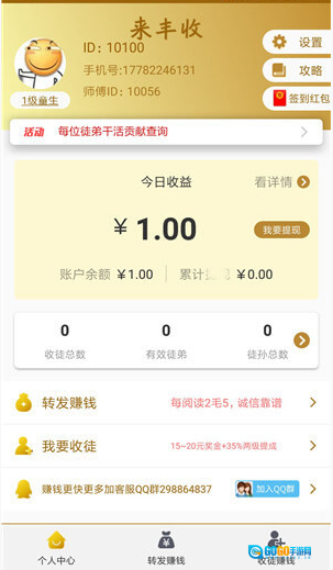 2、大家可以通过阅读来赚钱,除此之外,还能借助“转发”“收徒”的方式获得更多收益;