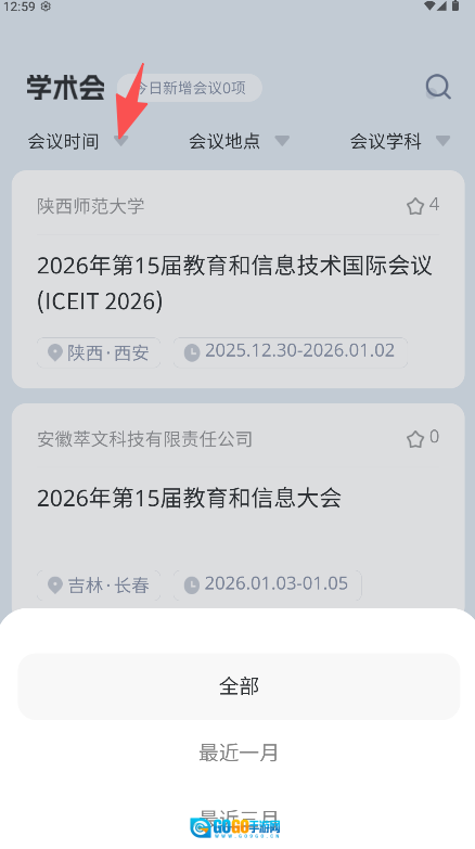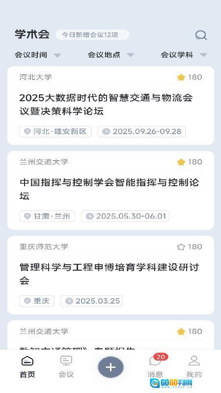 2、配备多维度筛选功能,支持依据会议时间、举办地区、所属学科等各类条件开展快速筛选操作。