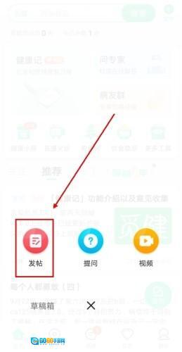 2、之后会自动弹出三种发布类型,选择【发帖】即可。