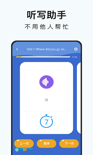 这里既能学习,也能开展单词听写,而且听写题目可以直接在这里完成。
