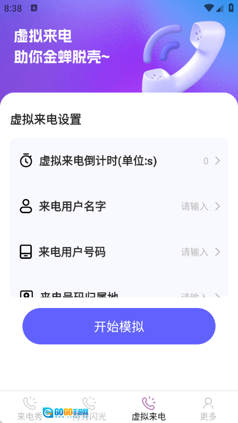 4、虚拟来电功能支持自由设置,方便你随时进行模拟来电操作。