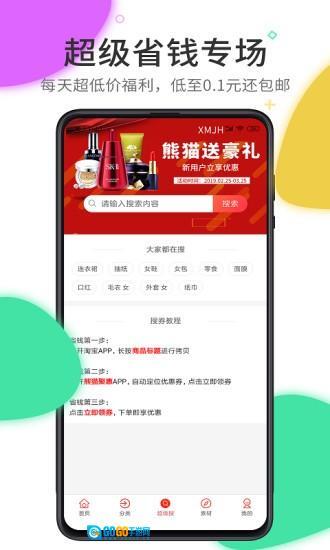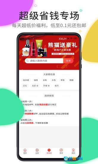 “熊猫聚惠”是一款购物优惠类软件,用户通过它能够获取各类商品的优惠券与折扣信息,进而用更划算的价格买到所需商品。