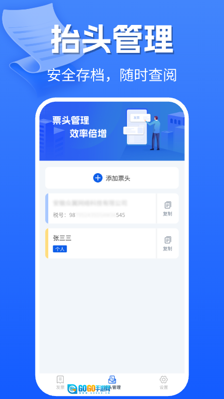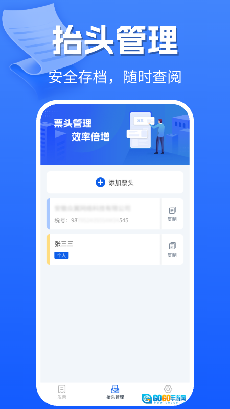 3、配备抬头管理模块,能够对企业及个人抬头进行安全存储,便于用户随时查看与调用,从而减少重复录入的情况。