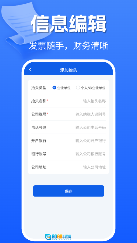 2、抬头管理功能:支持添加、保存和查阅企业与个人的发票抬头信息,其中涵盖税号、地址等详尽内容,便于开票过程中直接调用。