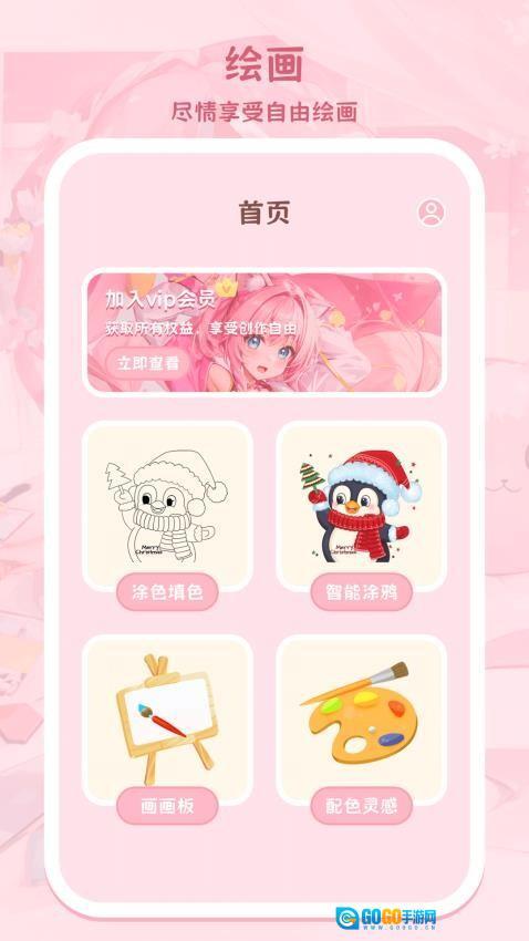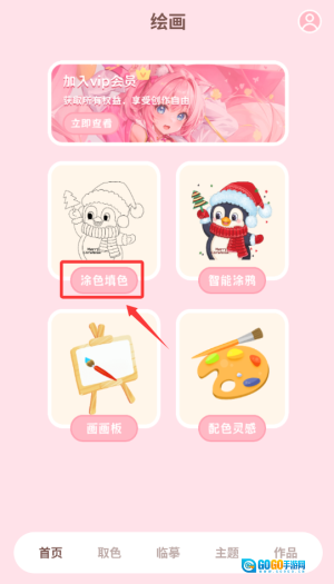 1、打开应用后,在首页找到并点击“涂色游戏”功能,即可进入画板页面。