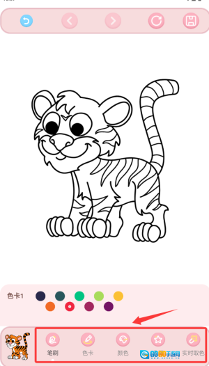 3、利用底部的调色板来挑选颜色,点击对应的区域就能完成填色操作。