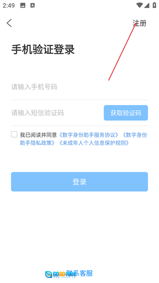 3、进入【手机验证登录】页面,先填写手机号码,点击【获取验证码】,勾选相关协议后就能点击【登录】按钮。