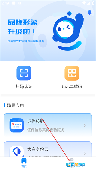 进入主界面后,可使用【扫码认证】和【出示二维码】功能,也能在场景应用里选择【证件校验】来核实证件信息的真伪。