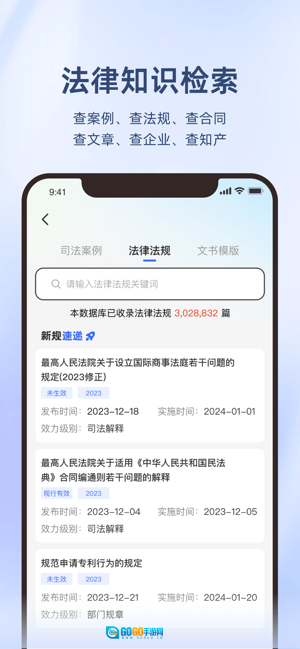 包含司法案例、行政法规、企业征信等六大数据库;可对常用资料进行批量管理与收藏夹管理。