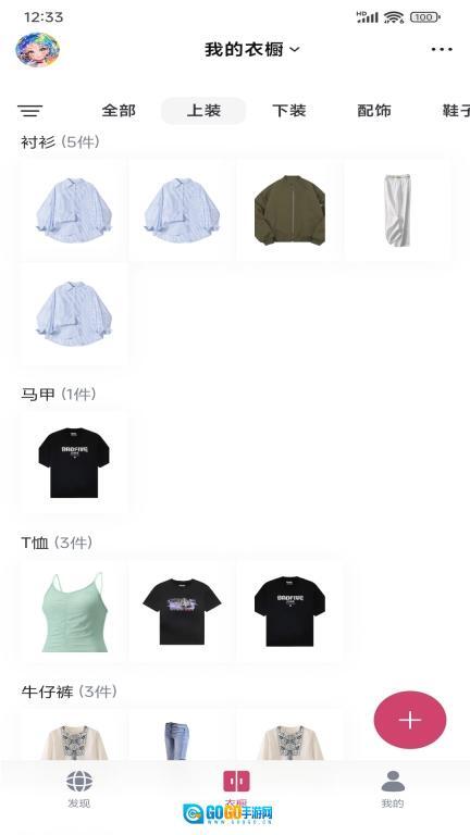 2、在衣橱页面中,能够开展分类管理工作,也可以及时添加各类不同的类目。