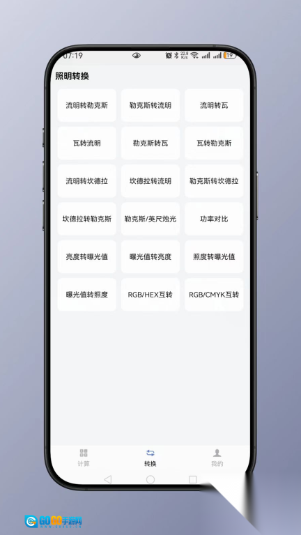 2、支持流明与勒克斯、瓦与坎德拉等多种光照单位的相互转换,还包含色彩单位转换。