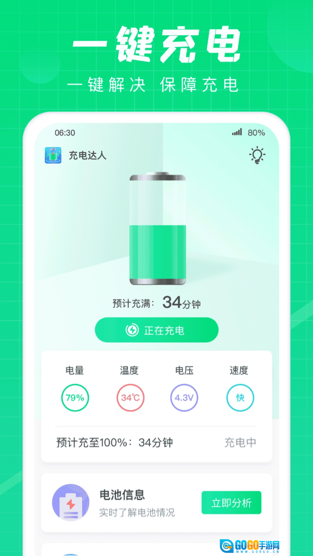 充电达人是一款实用性很强的手机充电应用,它专注于为用户提供充电管理相关服务。借助这款应用,用户能轻松掌握自己手机的电池状态,从而更好地对电池进行优化,进而延长电池的使用寿命。如果对此感兴趣,就赶紧来体验吧!