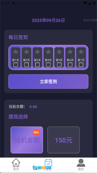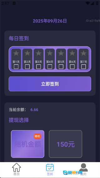 3. 点击页面底部的“签到”按钮,就能看到每日签到的功能界面了。
