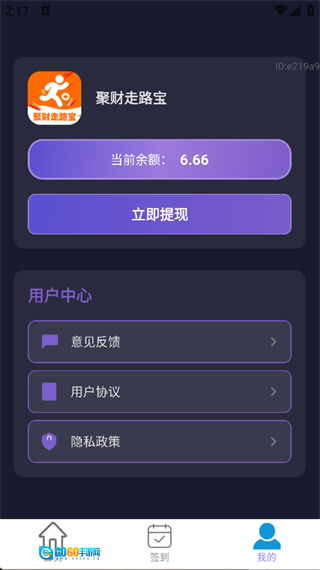 4. 点击页面底部的“我的”选项,就能查看当前余额、意见反馈、立即提现等相关功能。