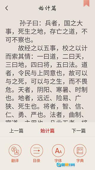 3、具备白话文翻译、返回上级目录、字体调整、字典查询等多种实用功能。