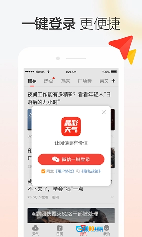 晶彩天气这款应用可不止是个天气软件,用户能在这里做的事儿多着呢。除了能轻松查询天气、了解各类生活指数,还能查看日历、挑选吉日、浏览历史上的今天,其他五花八门的资讯也能及时掌握!赶紧来晶彩天气试试吧!