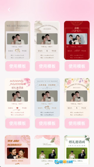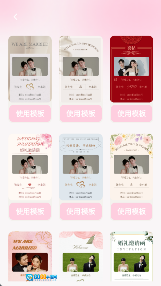 2、在婚礼邀请页面中有多个不同的模板可以选择,用户根据喜好进行选择对应的一个进行使用即可;