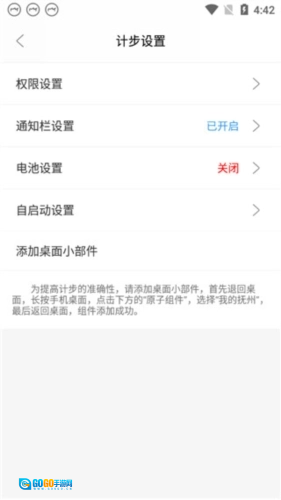1、点击【设置】选项,进入后找到并打开【计步设置】,接着添加对应的桌面小部件。