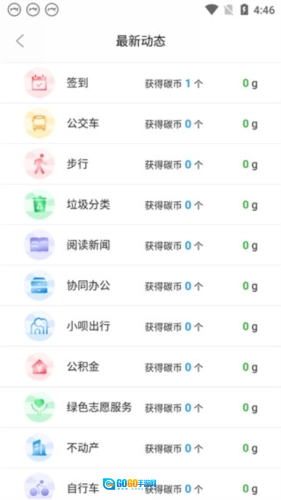 1、在绿宝功能里,你能看到垃圾分类、公积金、绿色志愿服务等多种获取碳币的途径。