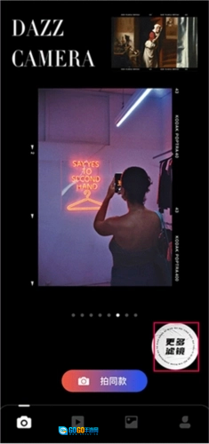1、首先打开Dazz原相机,点击更多滤镜;