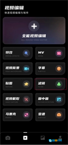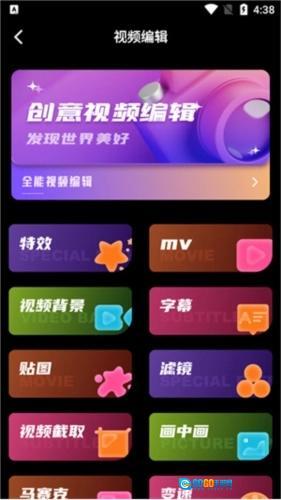 2、视频编辑:包含视频特效制作、视频MV创作、视频压缩处理、视频截取功能,以及字幕添加、贴图设计、滤镜应用、封面制作、倒放设置和变速调整等操作。