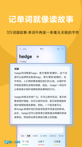 过目不忘单词的一大特色在于它收录了30万个词源故事,这些故事让单词学习过程变得生动有趣,告别枯燥乏味。学习者借助阅读这些故事,能够轻松掌握并记住单词。此外,该学习工具还利用大数据技术分析单词间的关联程度,构建起包含10万余个词条的单词关联网络。这一功能帮助学习者更高效地拓展词汇量,尤其适合有大量单词学习需求的人群。