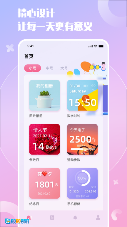 3、照片小组件:用户可以添加自己喜欢的照片,当感到疲惫、心累或伤心时,只需滑动手机,那些珍贵的照片就能激励自己继续前行。