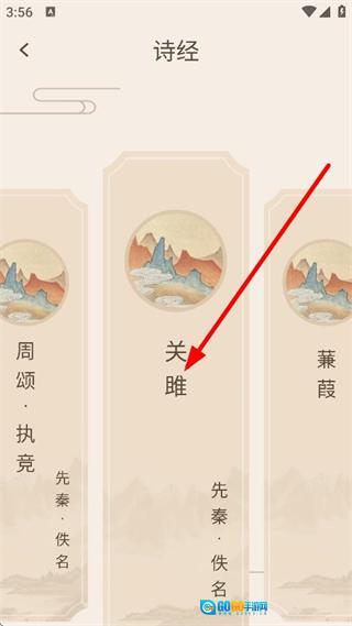 在古诗词分类页面中,找到并点击“诗经”选项,即可进入诗经的篇目页面。