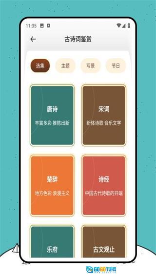 1、在首页,点击古诗词鉴赏,进入古诗词分类页面。