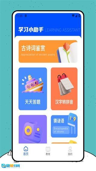 整合了古诗词鉴赏、答题闯关等多种趣味学习工具,把原本枯燥的知识学习巧妙融入游戏化场景之中,以此激发用户的学习兴趣,助力他们在轻松的挑战过程里自然而然地积累知识,进而提升学习的主动性。