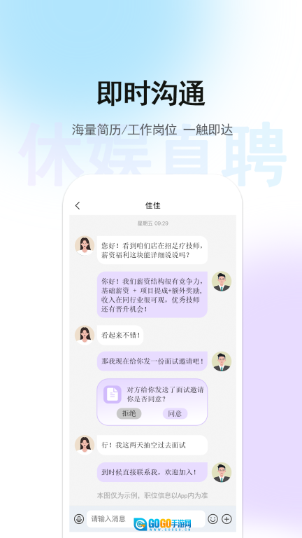 3、支持求职者和招聘方实时交流,招聘方能够直接发出面试邀约,帮助求职者更快入职。