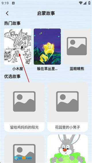 2、进入启蒙故事页面后,挑选想查看的故事,即可进入该故事的详情页面。
