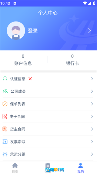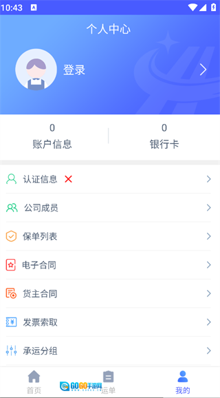 4. 点击页面底部的“我的”选项,就能登录账号,进而使用查看认证信息、公司成员、保单列表等相关功能。