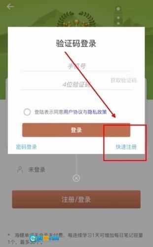 3、最后一步是在快速注册界面填写个人手机号并输入验证码,操作完成后就能登录了。