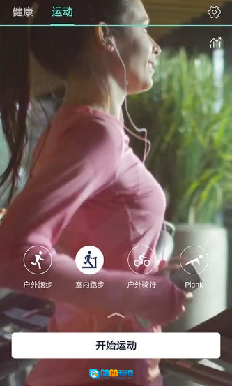 3、这里主要提供了户外跑步、室内跑步、室外骑车、Plank等四种运动模式,选择合适的即可开始运动;