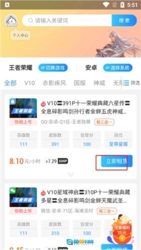 1、在本站安装并打开租一个租号平台,进入软件,点击自己感兴趣的账号进入页面。