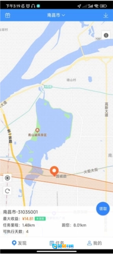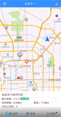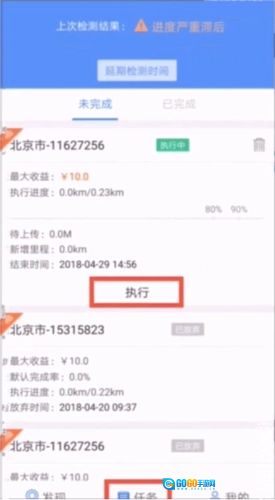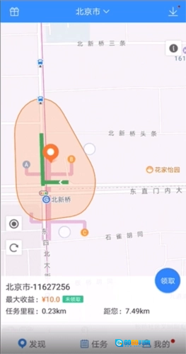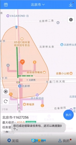 3、点击“执行任务”进入做任务界面,红色路线是2元的任务,蓝色路线是3元任务