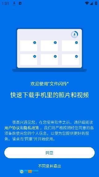 1. 首先,在本站获取文件闪传助手程序,打开该软件后同意相关协议;
