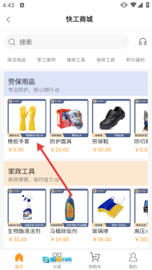 3、进入快工商城页面后,挑选我们喜欢的商品,点击进入商品详情页。