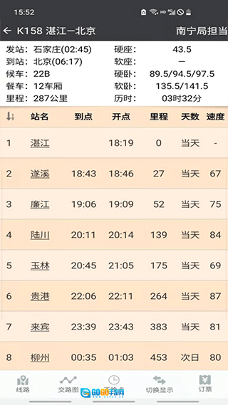4、操作流程简洁直观,支持对查询结果按标题排序筛选,双击车次即可查看所有停靠站点,即使是新手也能迅速上手完成查询操作。