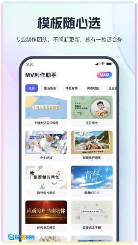 1.模板资源丰富多元:拥有覆盖生活、爱情、校园、企业等各类主题的MV模板库,并且会不断更新,能够满足您多方面的需求。