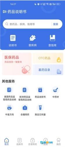 打开应用后,无需注册即可使用大部分核心功能。首页设有三大常用功能:说明书、查疾病和查指南,接下来为大家逐一解析这些功能的作用。