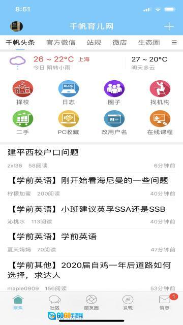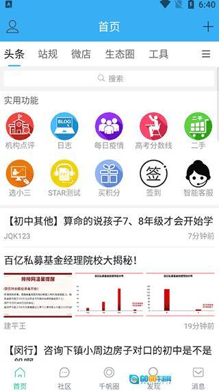 千帆育儿网是一款教育学习类软件,主要面向有升学及其他学习需求的人群。它功能丰富,首页便提供机构点评、高考分数线、Star测试等实用功能;社区板块涵盖休闲区、生活区、升学板块等内容;千帆圈里能看到其他用户分享的趣味见闻与心得;消息模块则可接收其他用户留言和系统消息,方便用户及时查看重要信息。