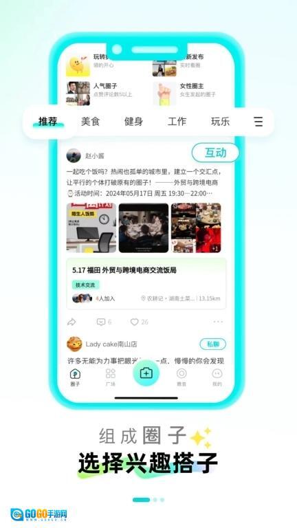 2、在动态页面里,你可以随时挑选兴趣相投的搭子,组建专属于你们的圈子,方便大家进行互动交流。